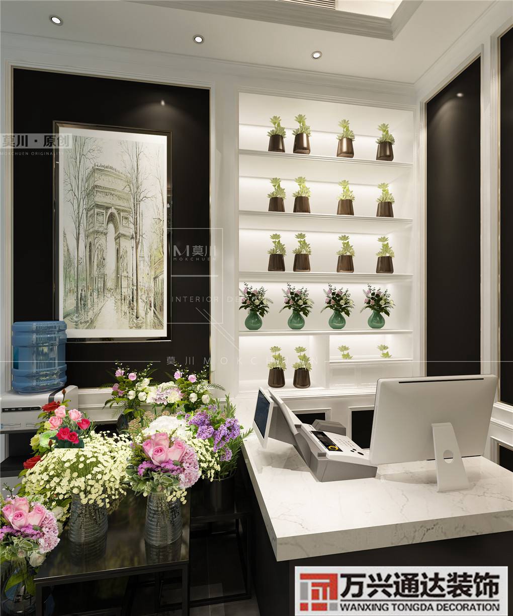 抓住焦點(diǎn)空間 一般就消費(fèi)者心理學(xué)而言,花店裝修設(shè)計(jì) 任何店面都有所謂的“焦點(diǎn)空間”,也就是最容易吸引消費(fèi)者目光的所在,由于花店通常都為中小店面30平方米以下,故主要焦點(diǎn)空間不外乎下列四個(gè)地方1通道的正面2。