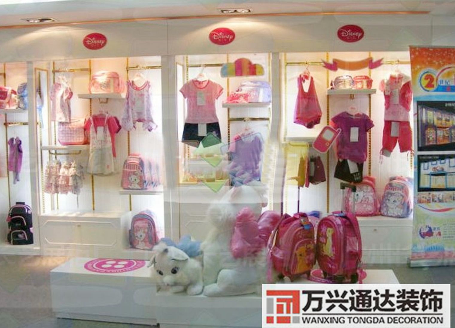 就童裝店裝修風格設計的組成而言,童裝店裝修風格圖 雖然應將嬰兒區與學步兒童區加以大致區分,但為使尺寸及風格讓家長們容易了解,因此,在平面計劃上有必要做縱向及橫向的交叉裝修的配置此外,其店中所設品牌最好能夠從店。
