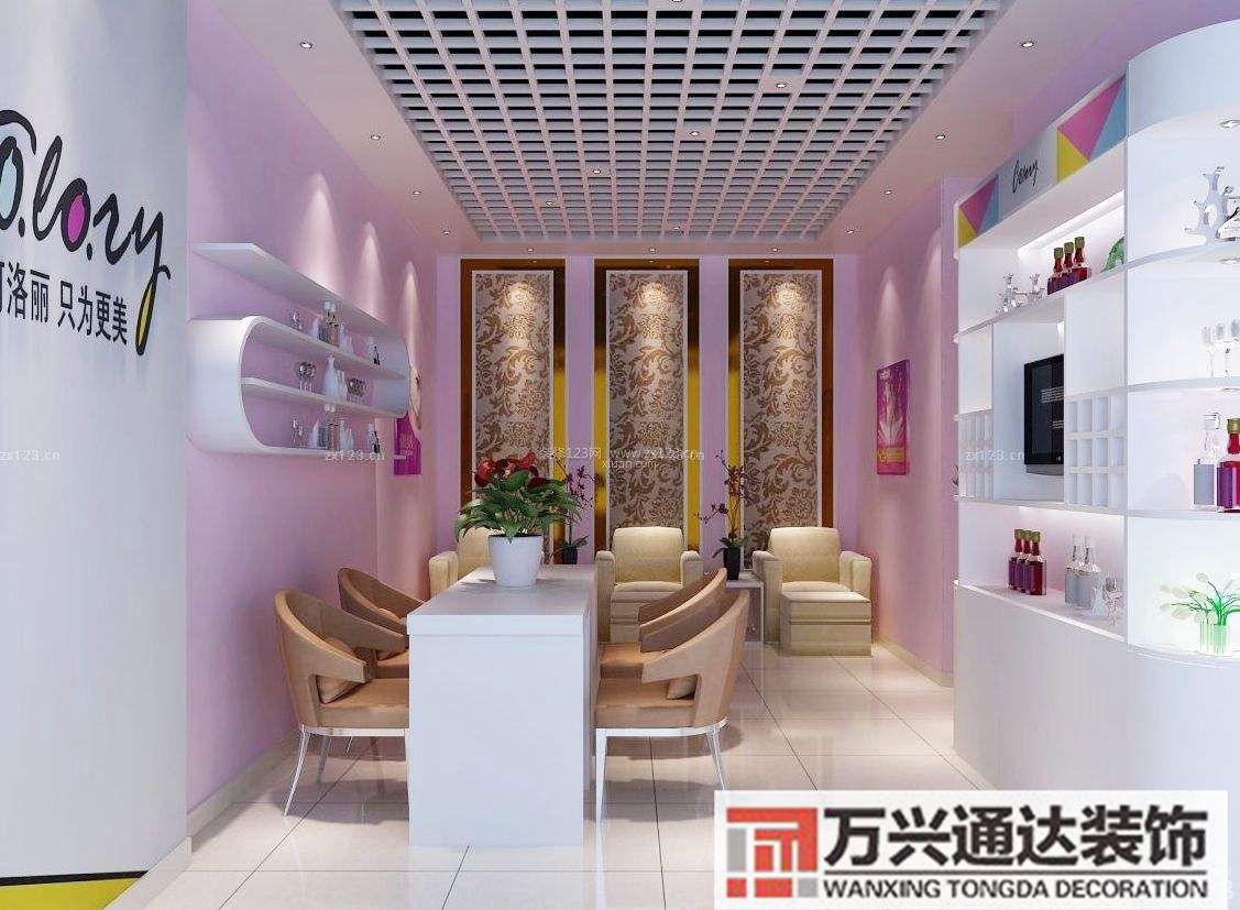 4、2美甲店裝修照明設計在美甲店照明的設計上,可以選擇基本照明重點照明和修飾照明三種形式基本照明可選用冷暖色調的日光燈,形成個明亮溫馨的美甲環境重點照明的燈可選用投射燈,這些燈主要用來展示產品宣傳圖片等。