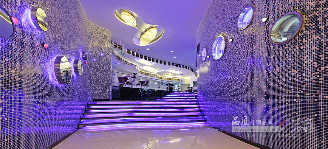 - 設(shè)計說明:休閑的跨界健身會所,讓它成為除了家和工作場所以外的第三空間,LED光點氣泡與魚群在海底暢游,跟隨它們進入海底隧道,透過小圓窗看到泳池上空的巨大鯨魚底部,如同身在潛水艇內(nèi)。