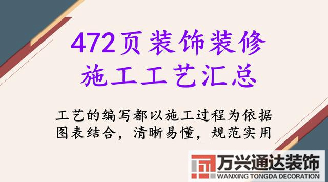 今天整理了472頁裝飾裝修施工工藝匯總,從實際施工出發,對裝飾裝修分項工程的施工做法更直觀地了解,每個工藝的編寫都以施工過程為依據,圖表結合,清晰易懂。