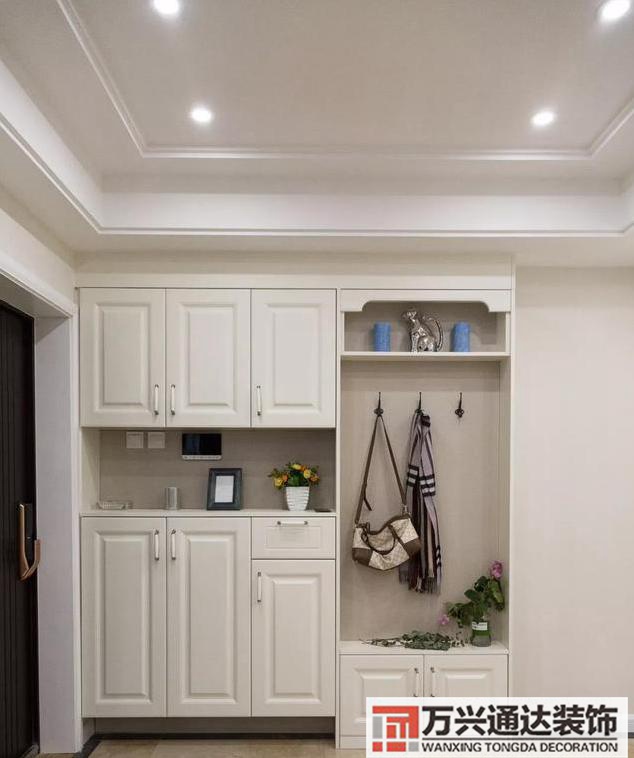 進門處還算是蠻大的,做了置頂的收納柜,除了放鞋子外,還設計了掛外套包包的位置,非常美觀實用。
